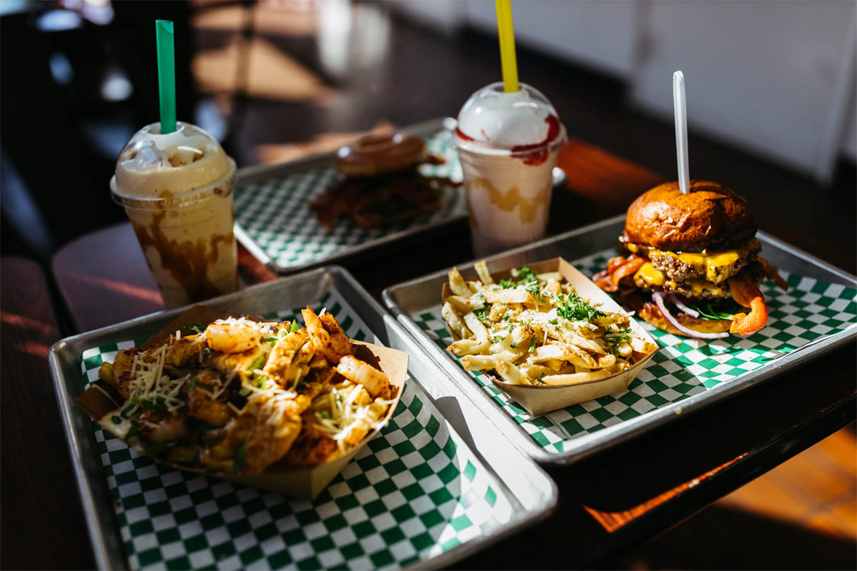 For first timers: Try the Big Homie ($13.50), or the Savage Burger ($15) The Oh My Luther ($12.50) was the first donut bun burger ever launched and is a much try. You cant have a burger without sides and the Sweet Potato Fries ($5) or Garlic Parmesan Fries ($5) are fantastic. If you feel adventurous, try the World Famous Alfredo Fries ($7.50) or the Taco Fries ($7.50). To top it all off, have a homemade Peach Cobbler Cup ($5) Fried Oreo Puffs ($4.50) or add one of their amazing shakes. The Peach Cobbler Shake ($6.75) and Chunky Oreo Shake ($5.25) are must haves!